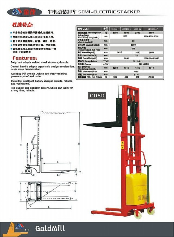 半電動(dòng)裝卸車 升高車 堆垛車 電動(dòng)車